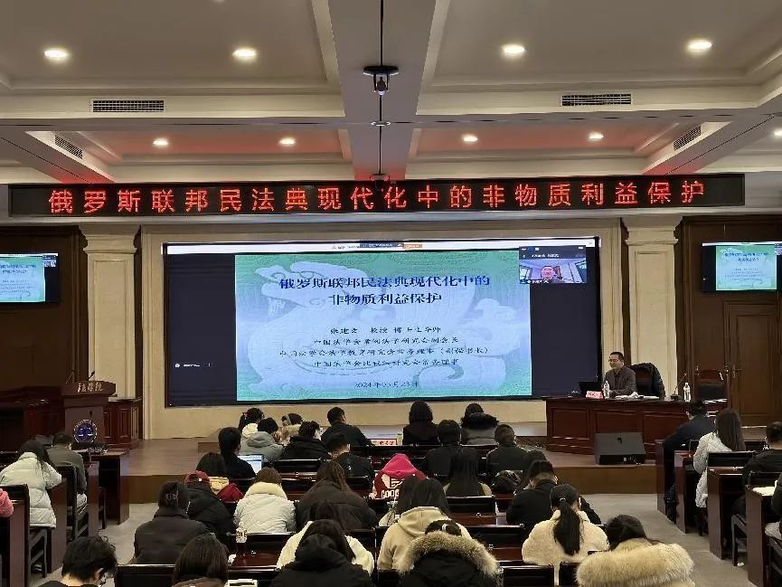 、中国法律文化与法治发展研究中心杨昌宇教授作为评议人。讲座题目为“俄罗斯民法典现代中的非物质利益保护”,张建文教授以俄罗斯民法典现代化中的非物质利益保护为主题,进行了精彩的讲座,并由杨昌宇教授精彩评议。张建文教授从历史维度出发,系统梳理了俄罗斯民法典对非物质利益保护的发展历程,探讨了俄罗斯联邦民法典在非物质利益保护方面的调整方法变化,以及俄罗斯联邦民法典中使用非物质利益合同的范围的扩大,俄罗斯联邦民法典对非物质利益保护方式的创新。杨昌宇教授从持续性发展、制度创新、价值定位等维度评议了俄罗斯非物质利益保护的立法创新,高度评价了张建文教授的研究成果,并对p站视频