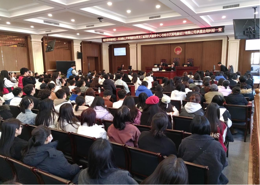 “法庭进校园”活动之南岗法院庭审活动庄严开锤。近百名师生在p站视频