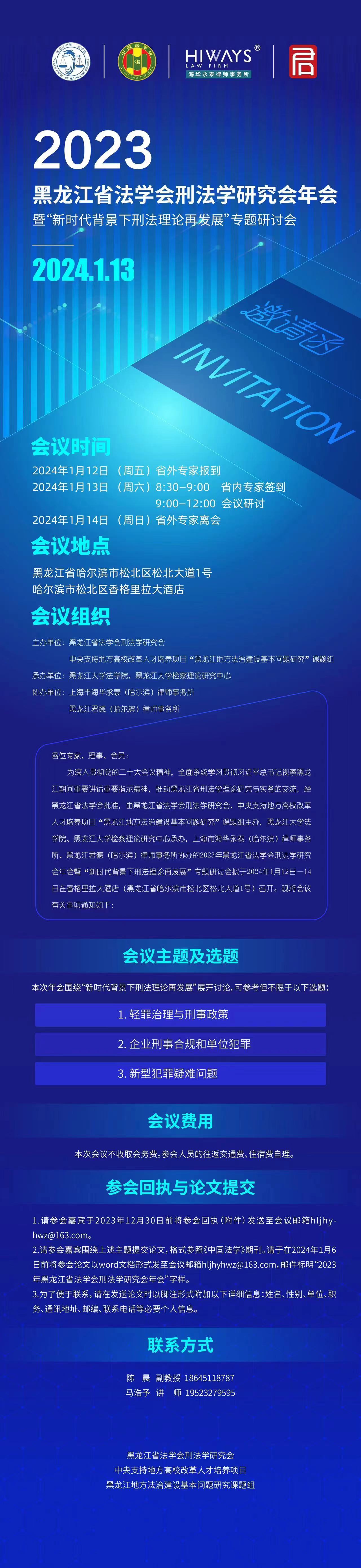 “技术进步、社会变革与法律回应”学术研讨会以及“2023年黑龙江省法学会刑法学研究会年会”会议通知