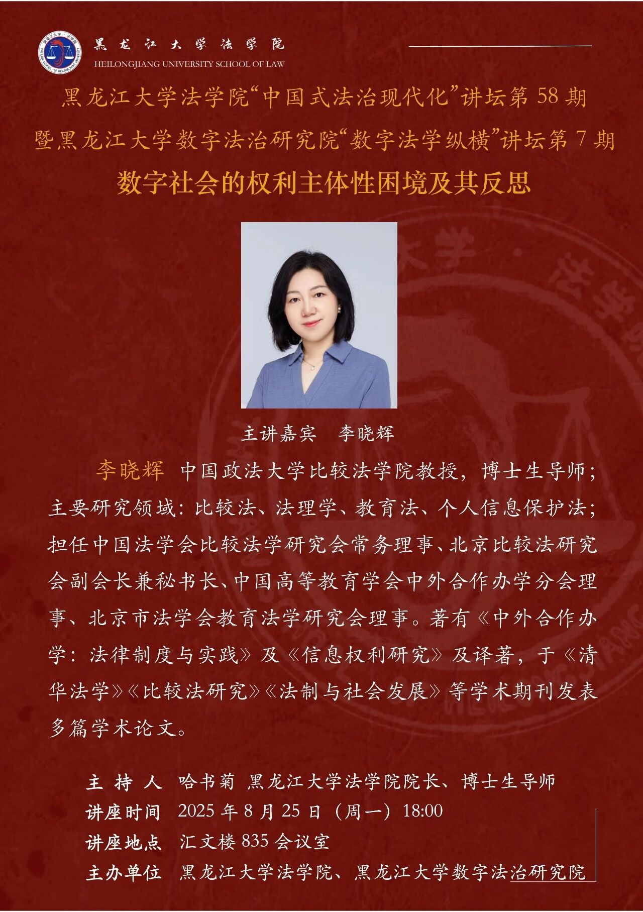 讲座预告 | p站视频 “中国式法治现代化”讲坛第58期暨p站视频 数字法治研究院“数字法学纵横”讲坛第7期