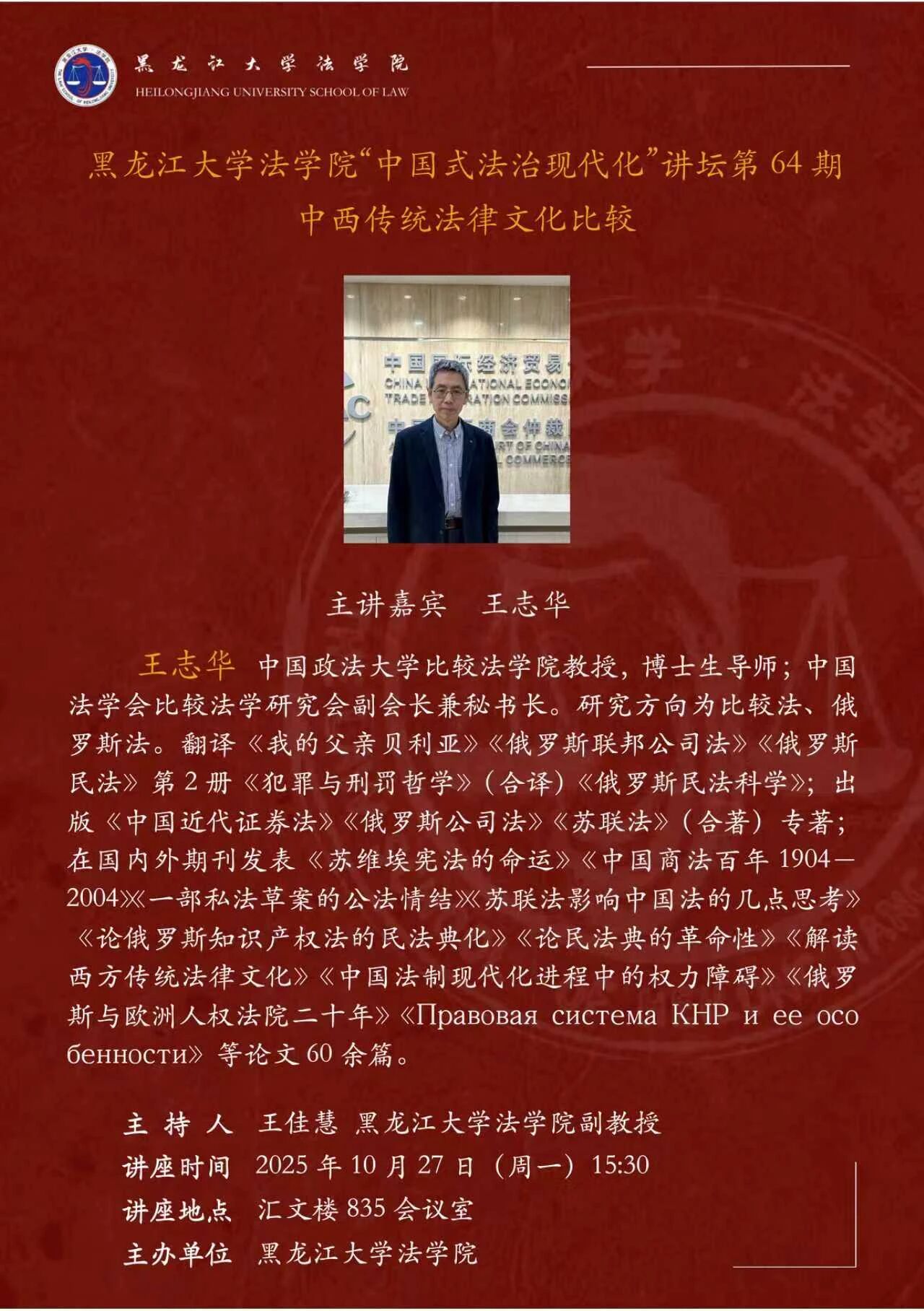 讲座预告 | p站视频 “中国式法治现代化”讲坛第64期 中西传统法律文化比较
