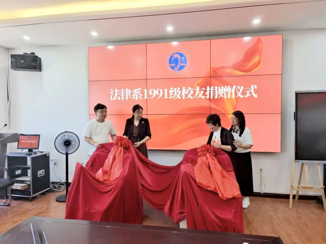 在热烈的掌声中,原法律系91级学生代表郝秀凤、孙明飞与p站视频