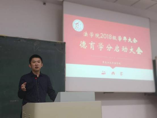 王业超老师在讲解德育学分制度运行模式的基础上,强调了德育学分和素质教育在大学教育中的重要性,鼓励学生在学术、品德、素质培养等方面全面发展,并对2018级新生同学未来的发展前景予以殷切的期望。