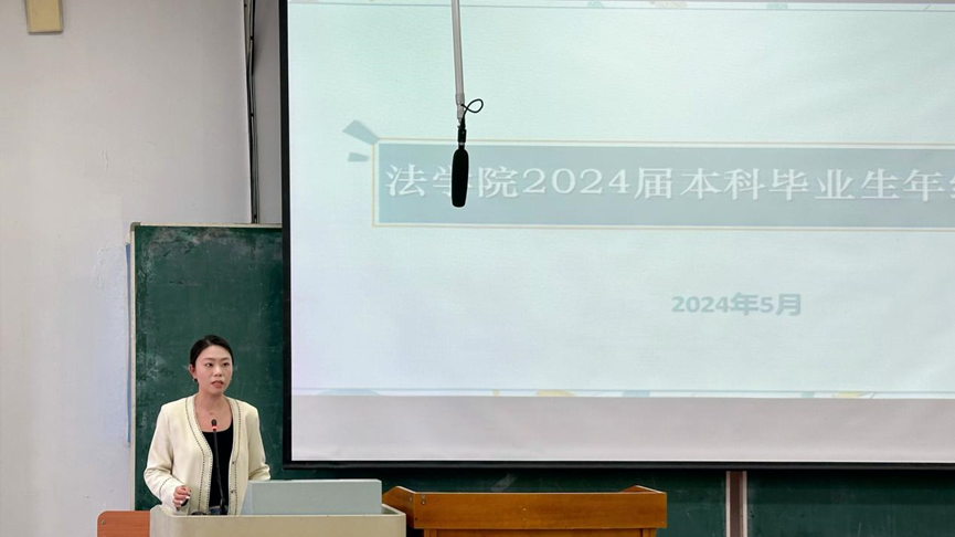 为深入解读毕业、就业相关政策流程,张婧老师针对毕业论文答辩、就业去向登记、档案信息填报等相关问题进行逐一讲解,以叮嘱同学们按时提交相关毕业材料,为顺利毕业打下坚实基础。随后,张老师着重就西部计划相关政策与法律人才招聘会、未就业毕业生供需双选会等进行介绍,通过分析往届数据,帮助毕业生认识就业市场的灵活性,勉励毕业生把握就业黄金期。张老师向2024届毕业生寄予希望,不忘初心,励志力行,做好新时代的答卷人。同时,通过“廉洁伴我行”诚信感恩教育大会,鼓励毕业生们树立诚信观念,增强诚信意识。