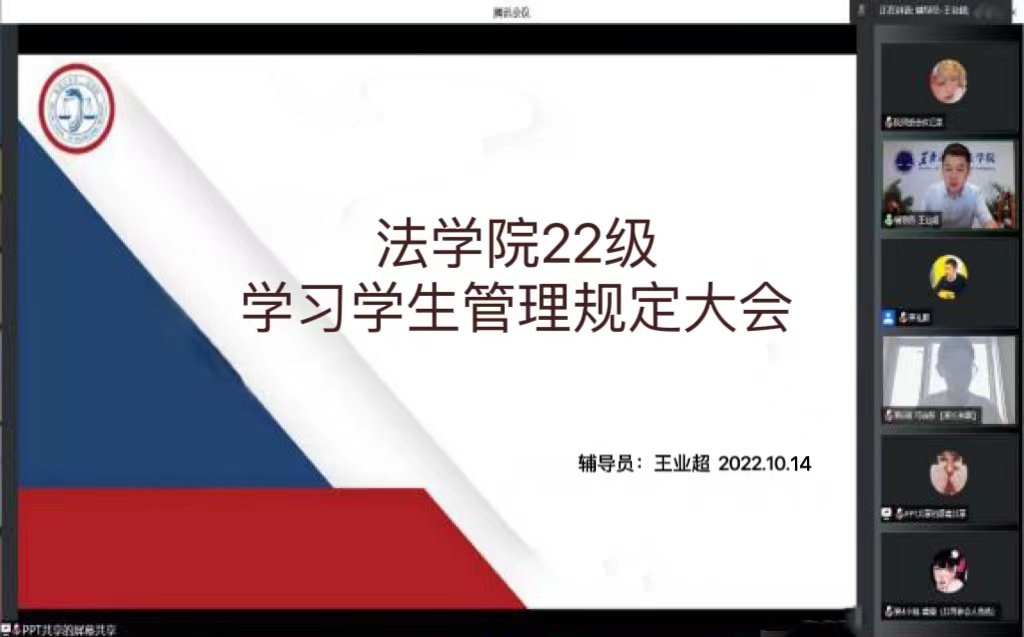 学生管理制度汇编以及国家颁布的《普通高等学校学生管理规定》展开讨论,王业超老师指出学生要端正学习态度、树立正确的信念,并且以积极乐观的心态去学习与生活。