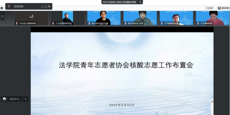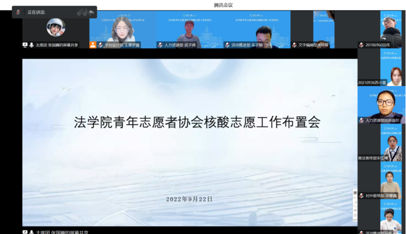 青年志愿者协会于2022年9月22日于腾讯会议召开了核酸志愿工作布置会,本次会议由p站视频