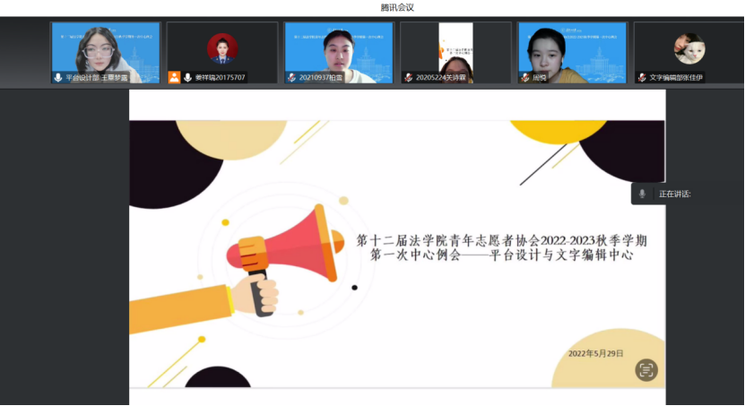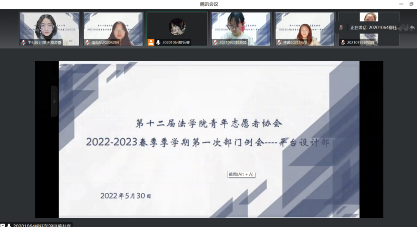 全体青年志愿者。本次例会由各部门部长于各自的腾讯会议室进行主持。