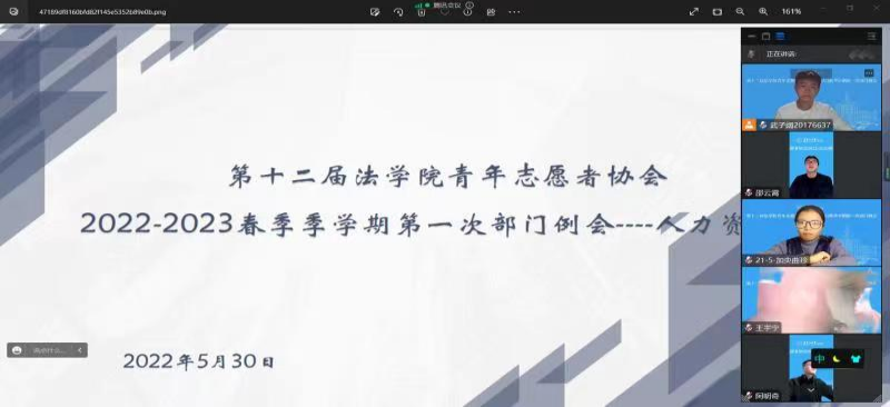 青年志愿者协会各部门于5月30日召开了本学期的第一次部门例会。与会人员为第十二届p站视频