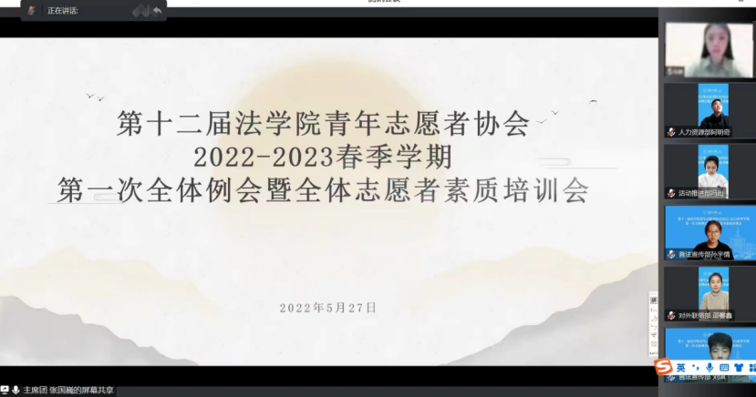 青年志愿者协会于2022年5月27日召开第一次全体例会暨全体志愿者素质培训会,本次会议由p站视频