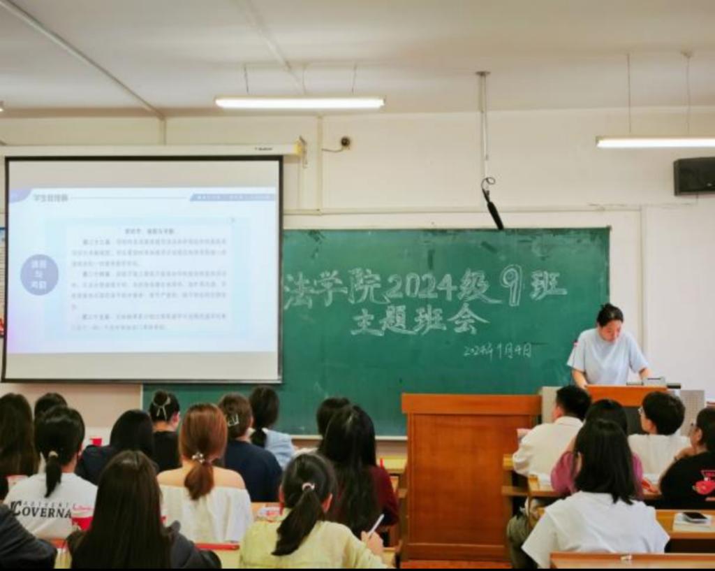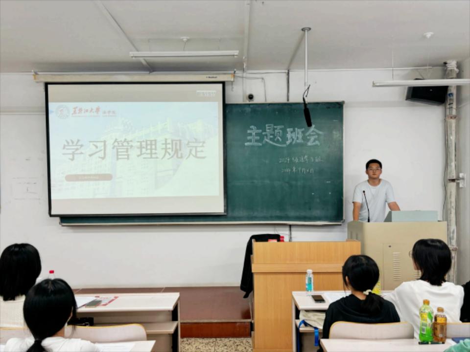 学生管理规定》中的重要条款与事项进行学习,详细说明了学生的权利与义务、学分构成体系、学籍管理、学生奖励与处分条例等内容,帮助同学们对学习与生活规划得更加清晰。随后,张老师又在纪律处分与学风建设等方面进行了逐项解读,要求同学们严格遵守各项规章制度,并对同学们关心的综合素质评价问题进行解答,鼓励学生在各个领域积极进取,有针对性地提升自己的综合素质,为未来的发展奠定坚实基础。