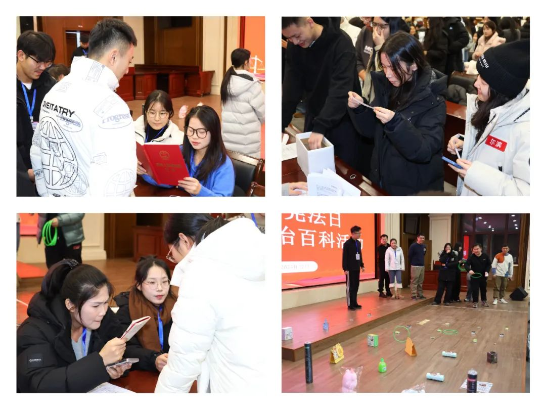 研究生会主办的趣味法治百科活动于12月3日在模拟法庭顺利举办。通过各种趣味横生的游戏和互动环节,增强了普法宣传与法治教育的趣味性,显著深化了广大学生对宪法精神的理解和对日常生活中法律问题的认识,在轻松愉快的氛围里展现了法治文化独特的魅力。