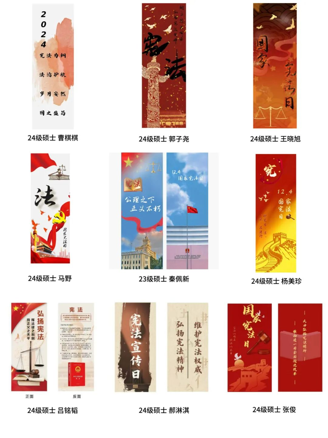 研究生会举办“妙笔生‘法’,‘宪’在进行”——宪法书签DIY征集活动。同学们以简洁的文字和富有表现力的图像,将宪法的元素和精神融入到每一张书签的设计之中。风格多样、设计精巧的书签作品,彰显着同学们的创造力与崇尚宪法、遵守宪法、捍卫宪法的坚定信念。期待这些精美的书签能够成为同学们学习生活中的良伴,时刻提醒同学们以宪法为最高的行为准则,共同营造校园尊法学法守法用法的良好法治氛围。现将优秀作品展示如下: