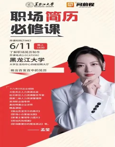 毕业生就业“百日冲刺”行动系列讲座——“职场简历必修课”专题活动相关事宜通知如下: