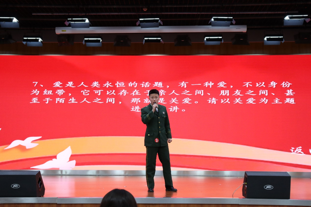 决赛分为命题演讲和即兴演讲。在命题演讲中,马一平以《追光行千里,发光照万方》为题,从“拓荒者”的坚守、青年的使命担当和自身军旅经历几方面,结合中国式现代化,讲述了自己的“追光”之旅,展现了青年人勇敢追梦、奋发图强的精神风貌;庞博以《追光躬逢盛世,发光朗照山河》为题,从前辈们的榜样作用、时代的重要性和当代青年人的使命担当等角度进行切入,结合自身经历,展现自己“奉献青春、保家卫国”的理想。在即兴演讲中,马一平以《绿色环保,智慧亚冬》为题,她重点讲解这不仅是一场体育盛会,更是一次展现我们对可持续发展理念承诺的绝佳机会,可立足黑龙江得天独厚的林业资源、冰雪资源,践行绿色低碳办赛新模式;面对 “爱是人类永恒的话题”这一主题,庞博紧扣“关爱”,从亲人、友人、陌生人几个角度重点阐释了其不以身份为纽带的特点,并点明“爱能温暖人间”,倡导大家传播爱、回应爱。