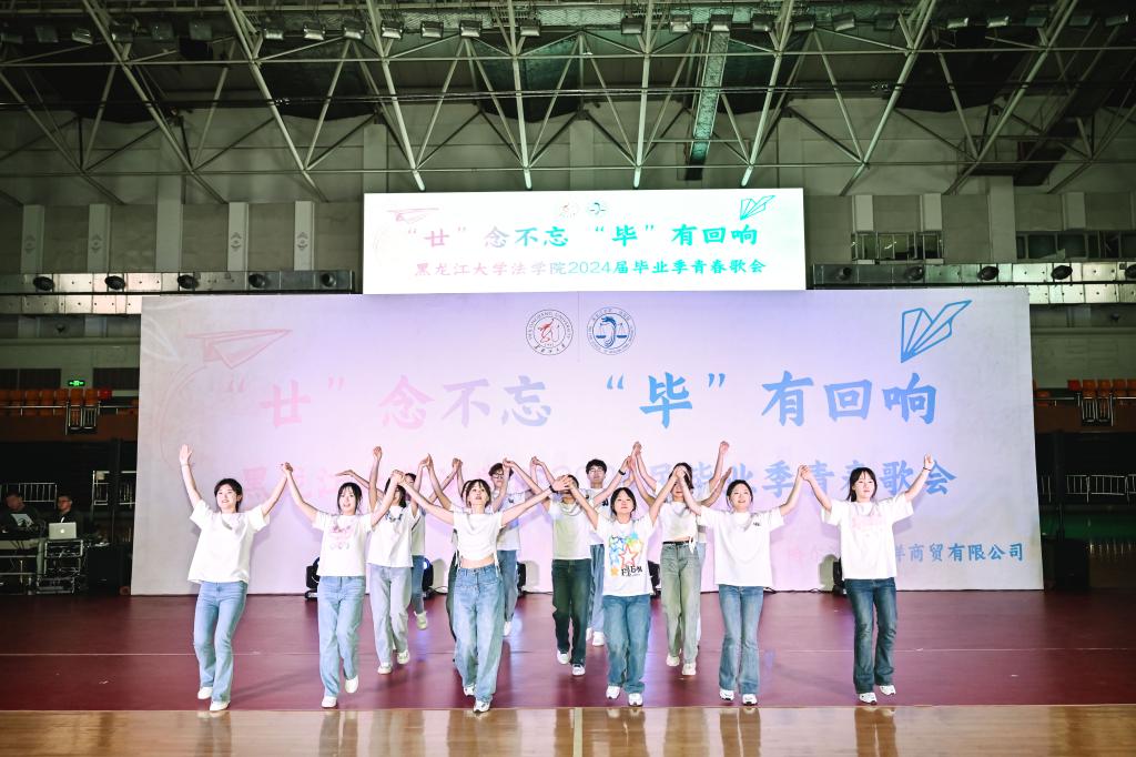 欢笑,是青春的主场;绽放,伊人风华模样。随着动感的节奏,邱锶雨、周俊颜等16位青春舞者跃上舞台,她们的舞步轻盈而有力,带动了全场的气氛,仿佛在告诉我们:青春就是要尽情舞动,不留遗憾。毕业的法学学子,在未来,我们仍要勇敢绽放,不负青春不负己!