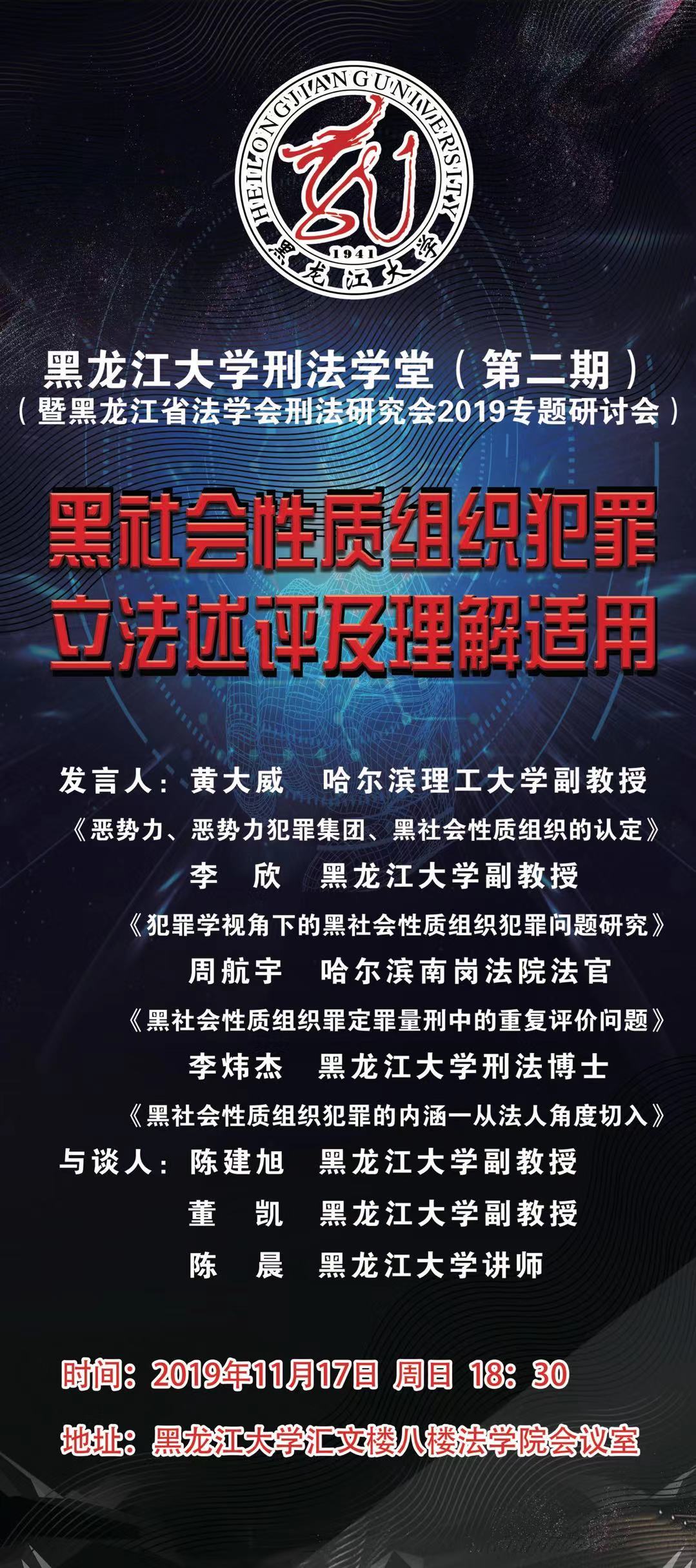 讲座题目:黑社会性质组织犯罪立法评述及理解适用