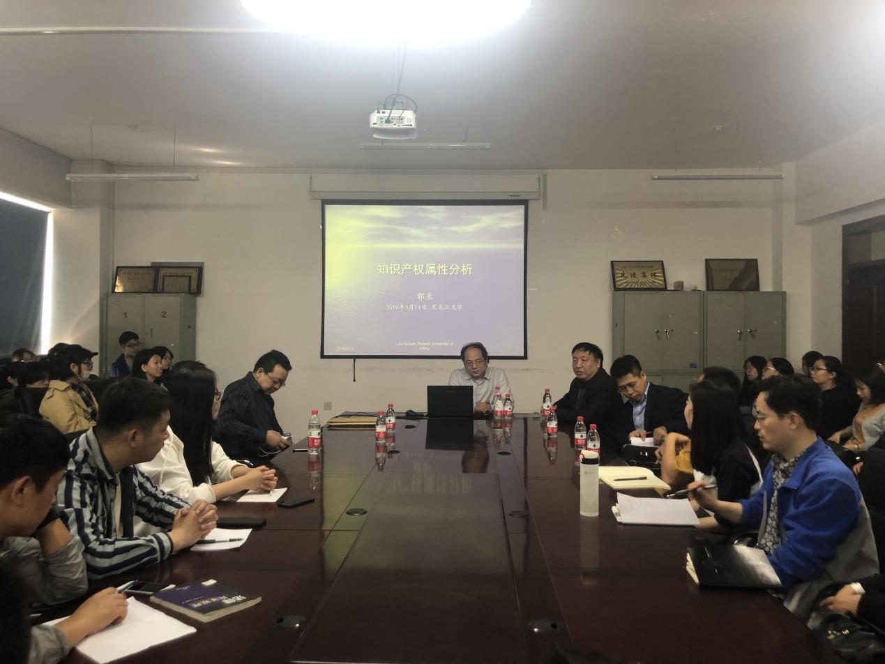 会议室,郭禾教授作了题为“知识产权属性分析”的专题讲座。讲座由p站视频