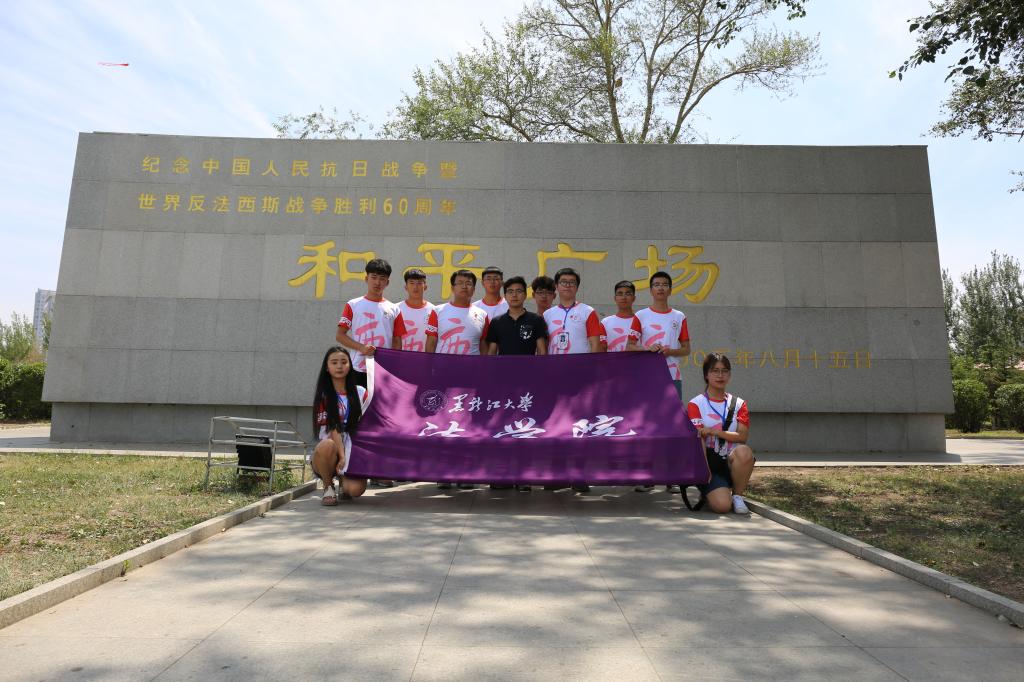 在最后的行程中,法学、经管、西语、化工四个学院的同学共同参观了和平广场,每个学院的同学分别就和平广场的标志性建筑进行讲解。