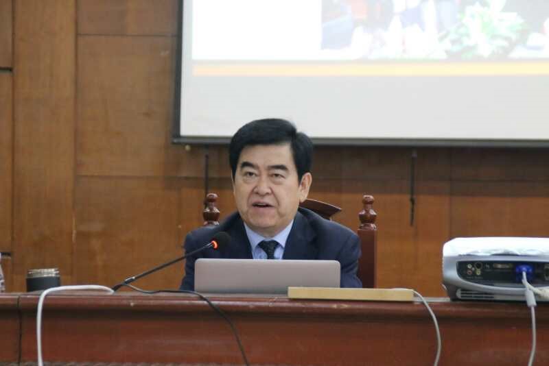 首先由董院长对杨震教授进行介绍。杨震教授是第十二届全国人大代表,中国民法研究会副会长,中国法学会民法典编纂项目领导小组成员,最高人民法院特聘咨询专家,享受国务院政府特殊津贴专家,国家二级教授,黑龙江省重点学科带头人,黑龙江省法学会副会长,p站视频