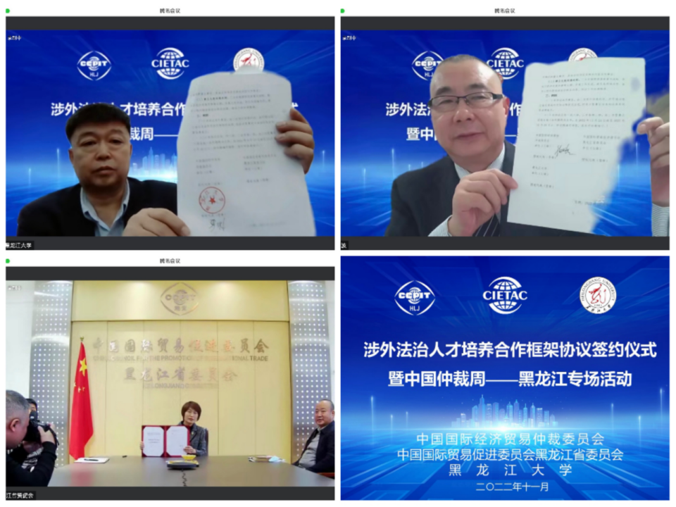 三方合作的《涉外法治人才培养合作框架协议》签约仪式暨“中国仲裁周——黑龙江专场活动”于11月24日下午在p站视频