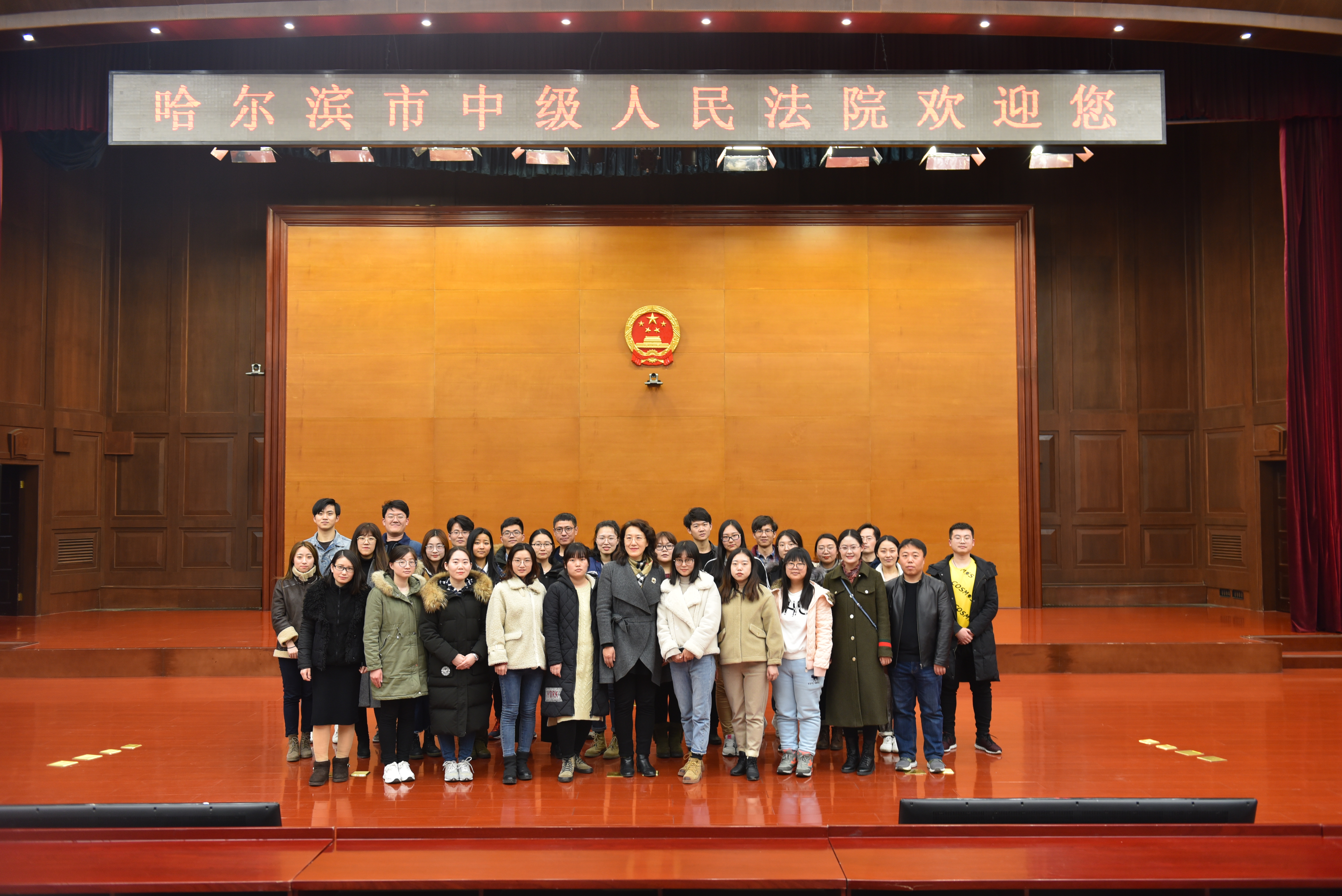 的学生,非常荣幸能够走进哈尔滨市中级人民法院,零距离的感受法治氛围,积累法律实务的经验,让同学们对法院的工作事项和流程有了更直观、更深刻的了解,作为法律专业的学生,以后大多也会从事这方面的工作,因此在学好书本上的知识的同时,也要多参加社会实践运用法律知识为社会服务,非常感谢学校和老师为我们提供这次宝贵的机会,并希望以后能有更多的机会到法院参观研学。