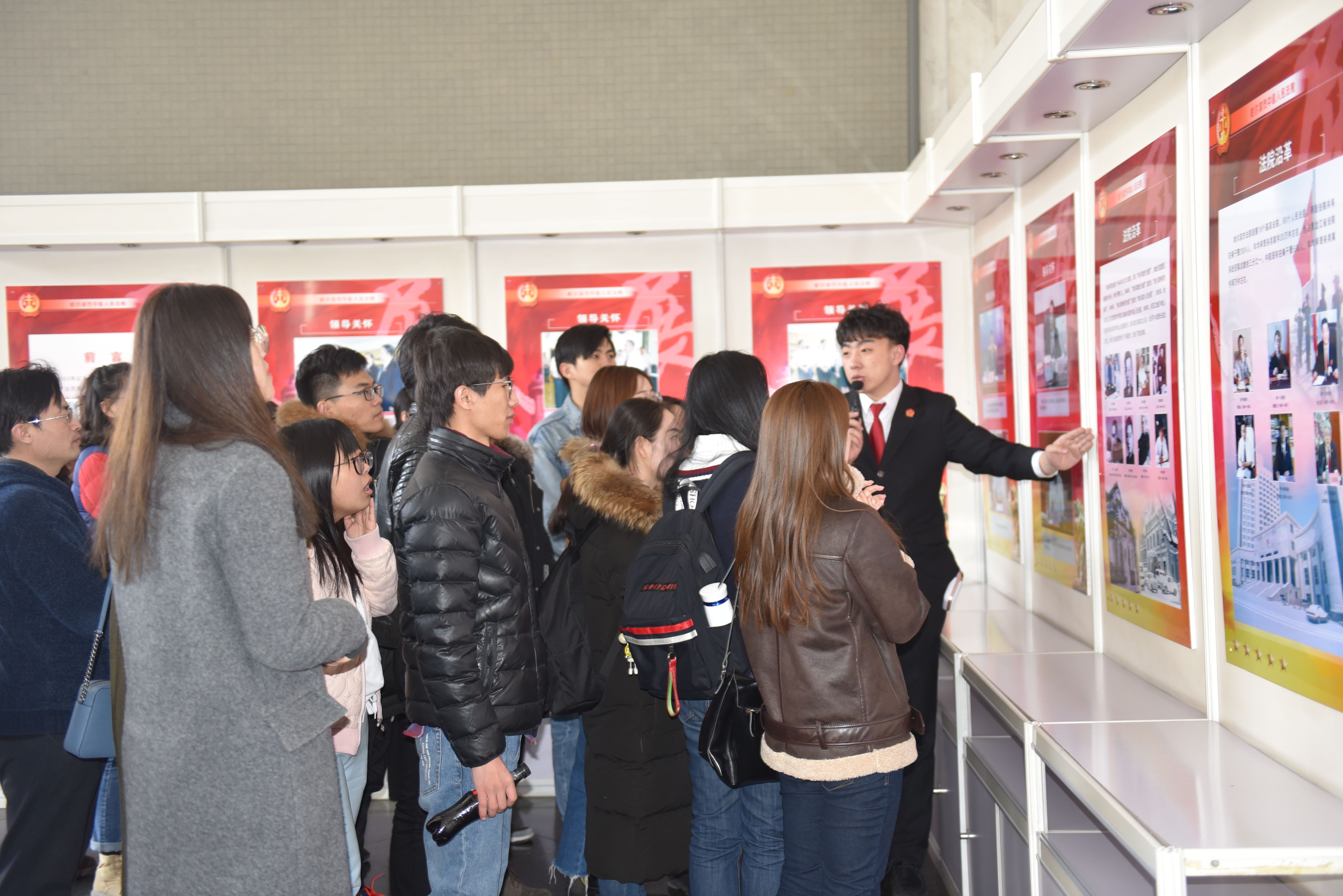 师生旁听了一起财产损害赔偿纠纷案件的庭审,又在讲解人员的带领下先后参观了从严管理展、第二科技法庭、诉讼服务中心、文化长廊、审委会会议厅、图书室等工作场所。