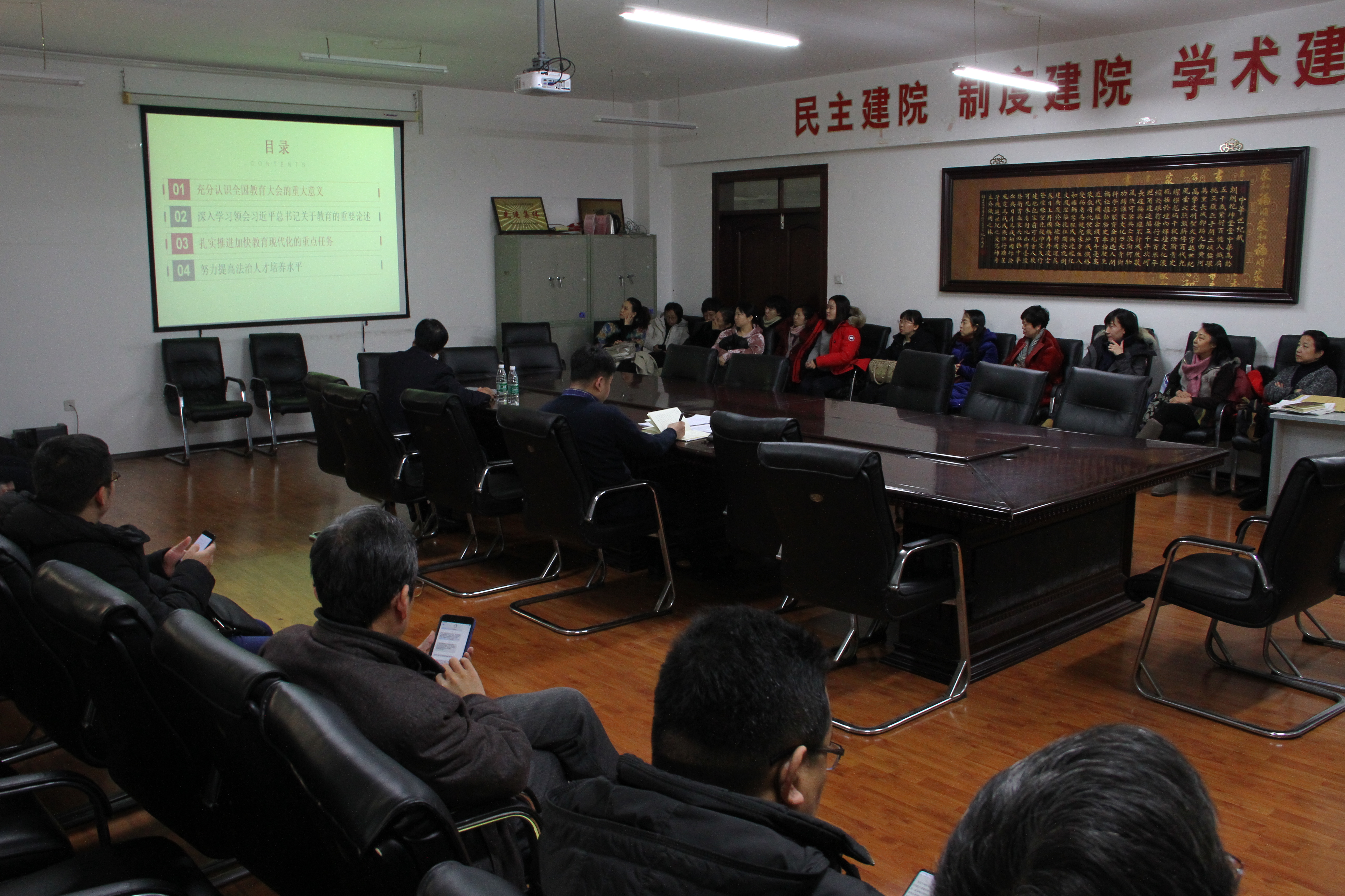 在汇文楼835会议室召开全院教职工大会,会上胡东书记作了题为:《贯彻全国教育大会精神,提高法治人才培养水平》的主题宣讲。