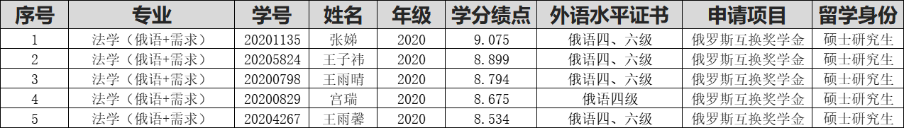 按照《2024年俄罗斯互换奖学金(中俄政府奖学金)项目遴选工作的通知》要求,根据项目具体介绍以及申请条件要求,经学生自愿申请,学院审核,拟推荐p站视频 以下5名学生申报此项目。现将推荐结果公示如下,公示期为2023年11月3日-7日。对推荐名单若有异议请联系张老师,86604985。