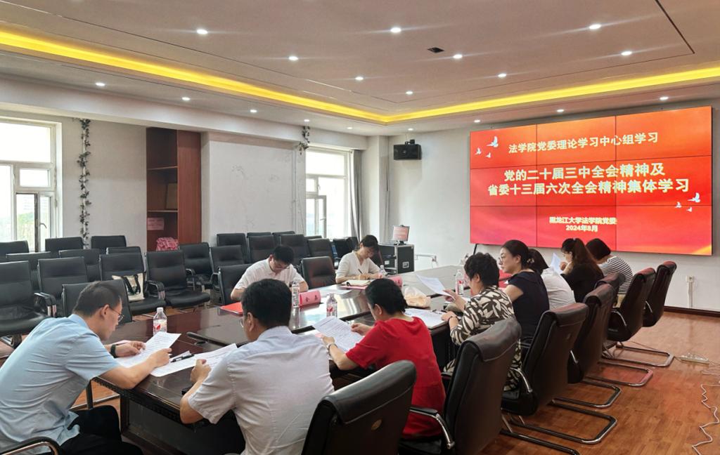 院党委副书记董捷传达学习省委十三届六次全会的会议精神。院长哈书菊结合学院推进高质量发展工作实际进行主旨发言,她指出,学习好贯彻好党的二十届三中全会精神是全院当前和今后一段时期的重大政治任务,学院师生要深入学习领会会议精神,结合学院实际,聚焦学科特色,持续深化法学教育改革,不断推动学院工作稳步向好发展。会上,全体党委委员结合自身实际,逐一交流学习体会。