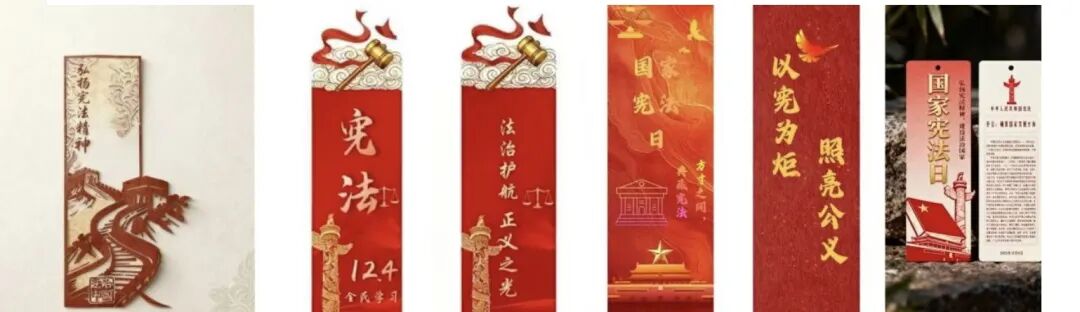 开展“方寸之间,典藏宪法”宪法书签创意设计活动,同学们将庄严的宪法条文转化为流动的线条,用大树、天平、法槌、光芒等意象,表达宪法的法律地位和宪法的公正、守护与指引。