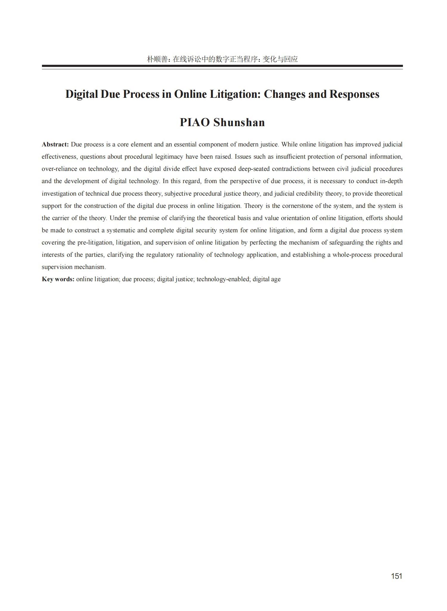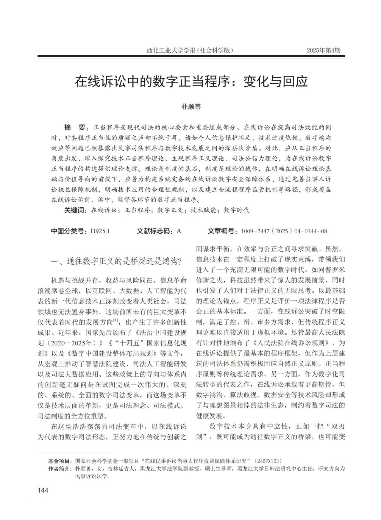 p站视频 教师朴顺善发表论文《在线诉讼中的数字正当程序:变化与回应》于《西北工业大学学报社会科学版》2025年第4期。