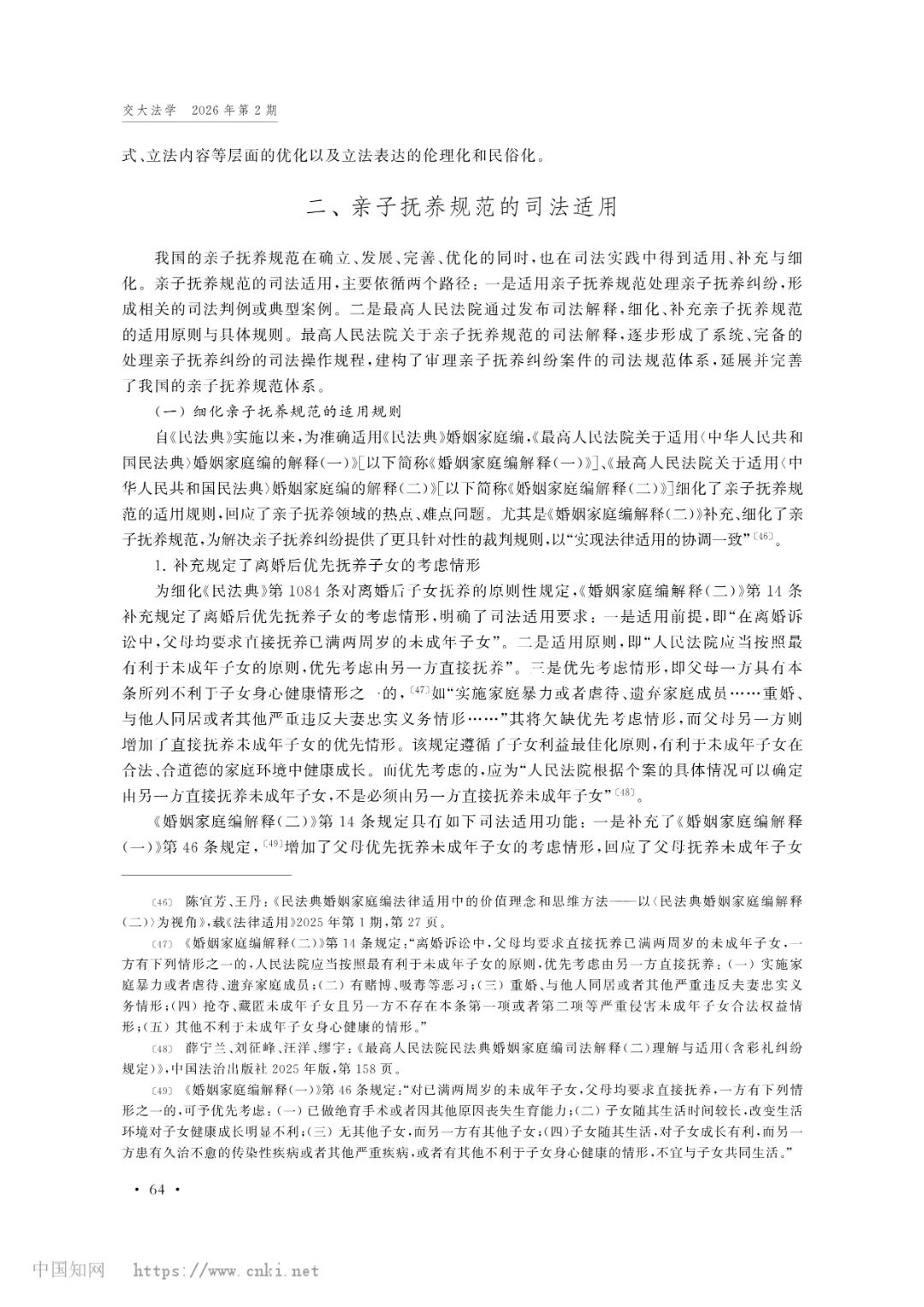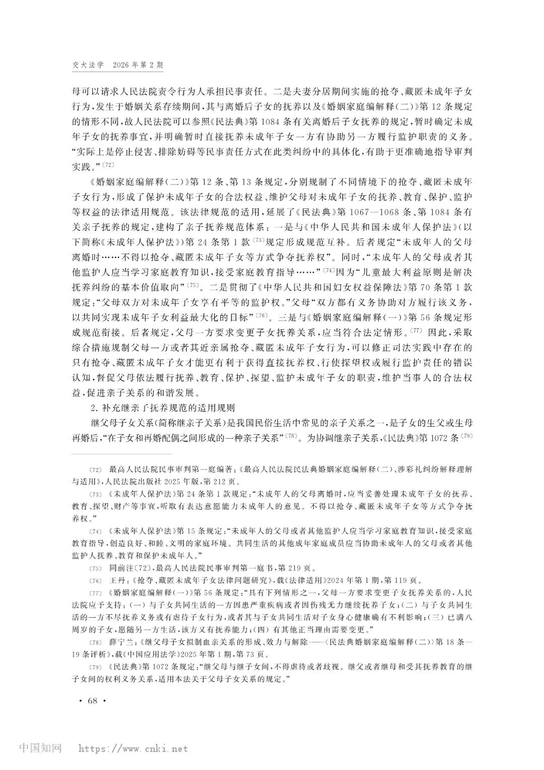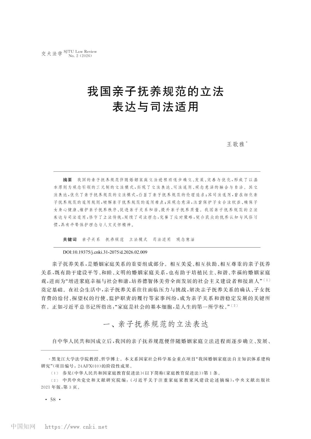 p站视频 教师王歌雅教授撰写的论文《我国亲子抚养规范的立法表达与司法适用》被《交大法学》(2026年第2期)收录。