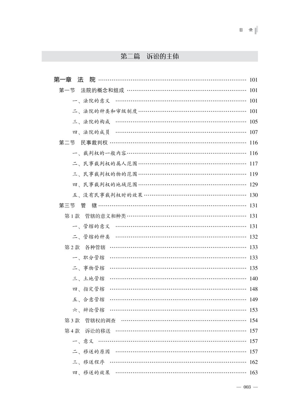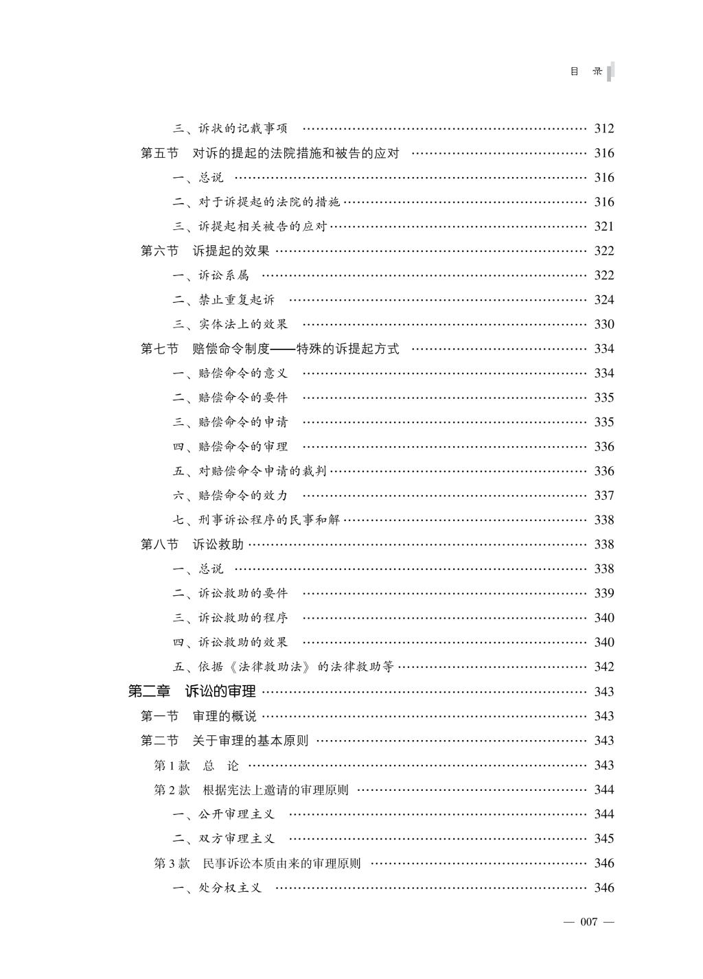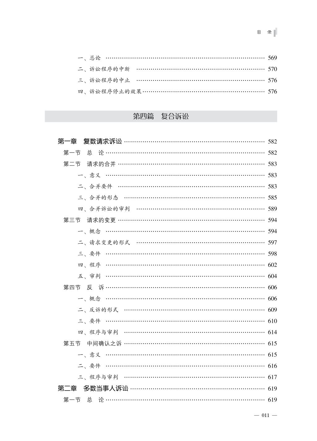 本书共分为八篇。第一篇为绪论(民事诉讼、民事诉讼法、民事诉讼法的诚实信用原则);第二篇为诉讼的主体(法院、原告和被告);第三篇为第一审诉讼程序(诉讼的开始、诉讼的审理);第四篇为复合诉讼(复数请求诉讼、多数当事人诉讼、为解决集团纠纷的诉讼制度);第五篇为诉讼的终结(依据当事人行为的终结、依据终局判决的终结);第六篇为上诉审程序(抗诉、上告、抗告);第七篇为再审程序;第八篇为简易、特别诉讼程序(小额案件审判程序、督促程序、公示催告程序)。