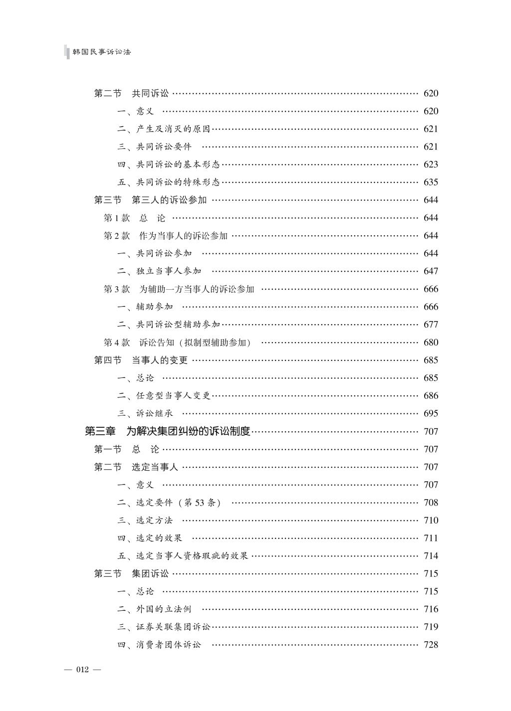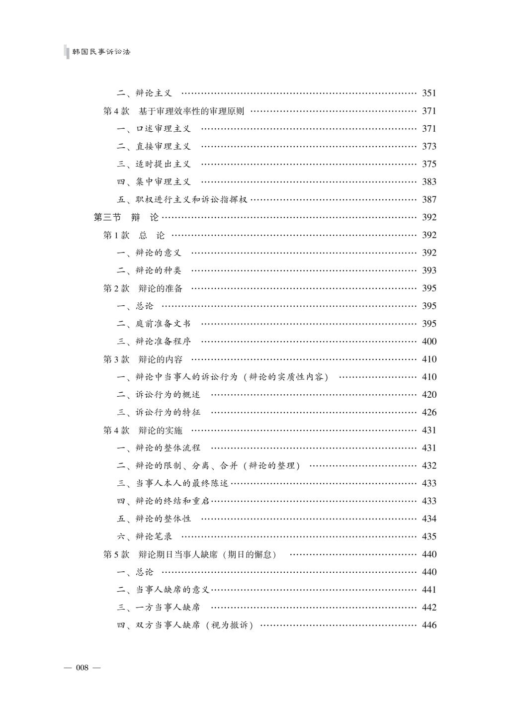 本书的翻译缘起于本人六十岁花甲之年的2020年4月,在首尔与中国弟子们的一次聚餐。当时弟子们在席间递给我一本题为《敬恩师》的回忆录,本人翻阅内容时,内心激动,眼中满含感激之泪。明明没有为他们做过什么,却收到如此厚重的谢意,难免心生愧意。至今每当翻开弟子们写下的回忆录,都会再次体会到“教育”二字的分量,也更加明白作为一名教师应当承担的责任。就在那次聚会上,弟子们提议将本人的拙著《新民事诉讼法》全篇译成中文。本人深知翻译工作的艰辛,也明白弟子们必将付出大量的心力,但想到弟子们能够用在韩国留学时所学到的专业知识为中国民事诉讼法的发展贡献一份力量,就欣然答应了他们的请求。当即,所有能够参与的弟子都欣然加入,分工确定术语并划分范围,完成了第一轮翻译。其后,又由弟子朴顺善教授、方丽妍教授、李光星律师和金柱博士对全书进行了细致的通审与修订,终于形成了如今的全译本。虽然做出了很多努力,但仍有不足,今后会继续完善不足之处,努力向中国法学界系统全面地介绍韩国民事诉讼法。